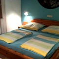 1 Schlafzimmer mit Doppelbett und angrenzendem Badezimmer (klimatisiert).